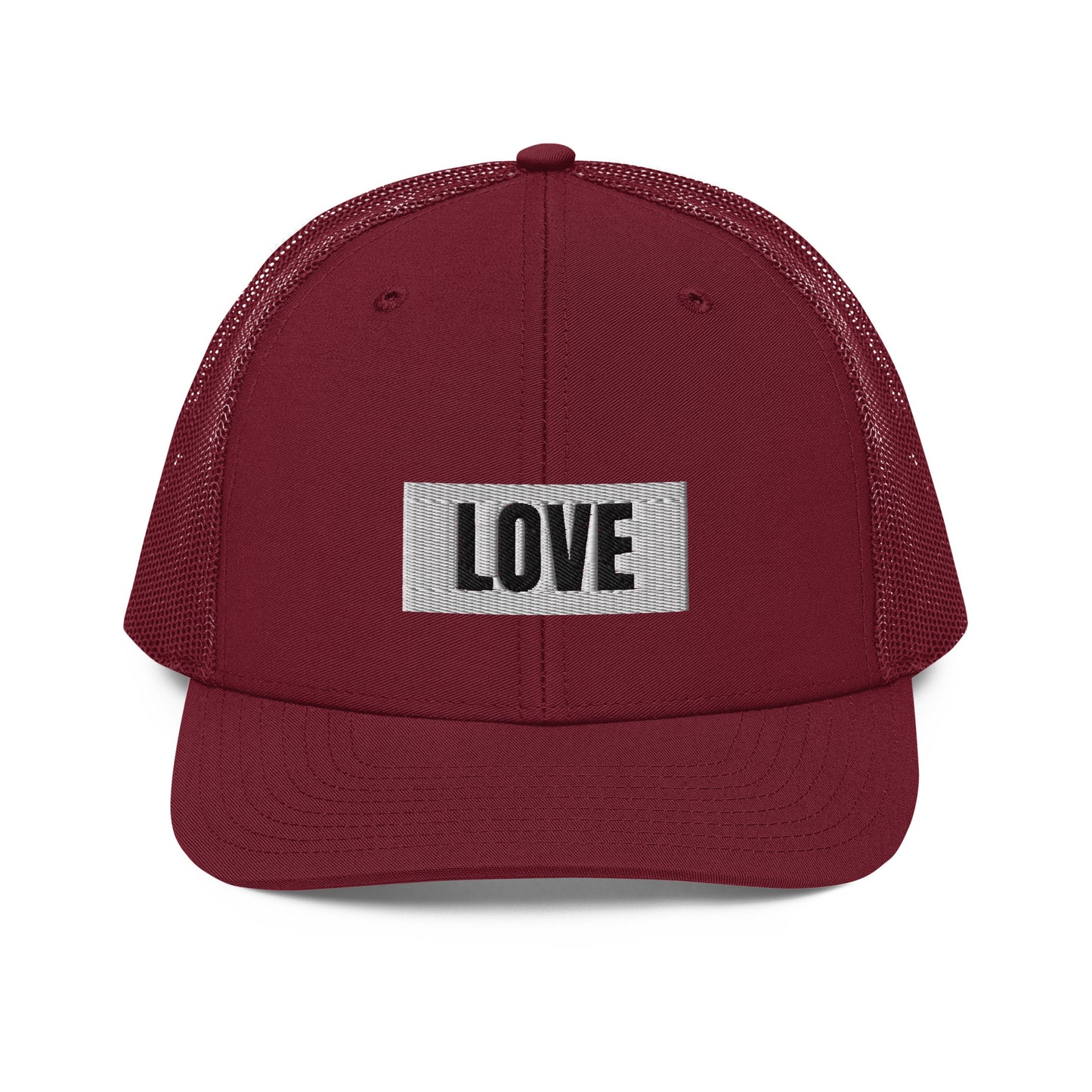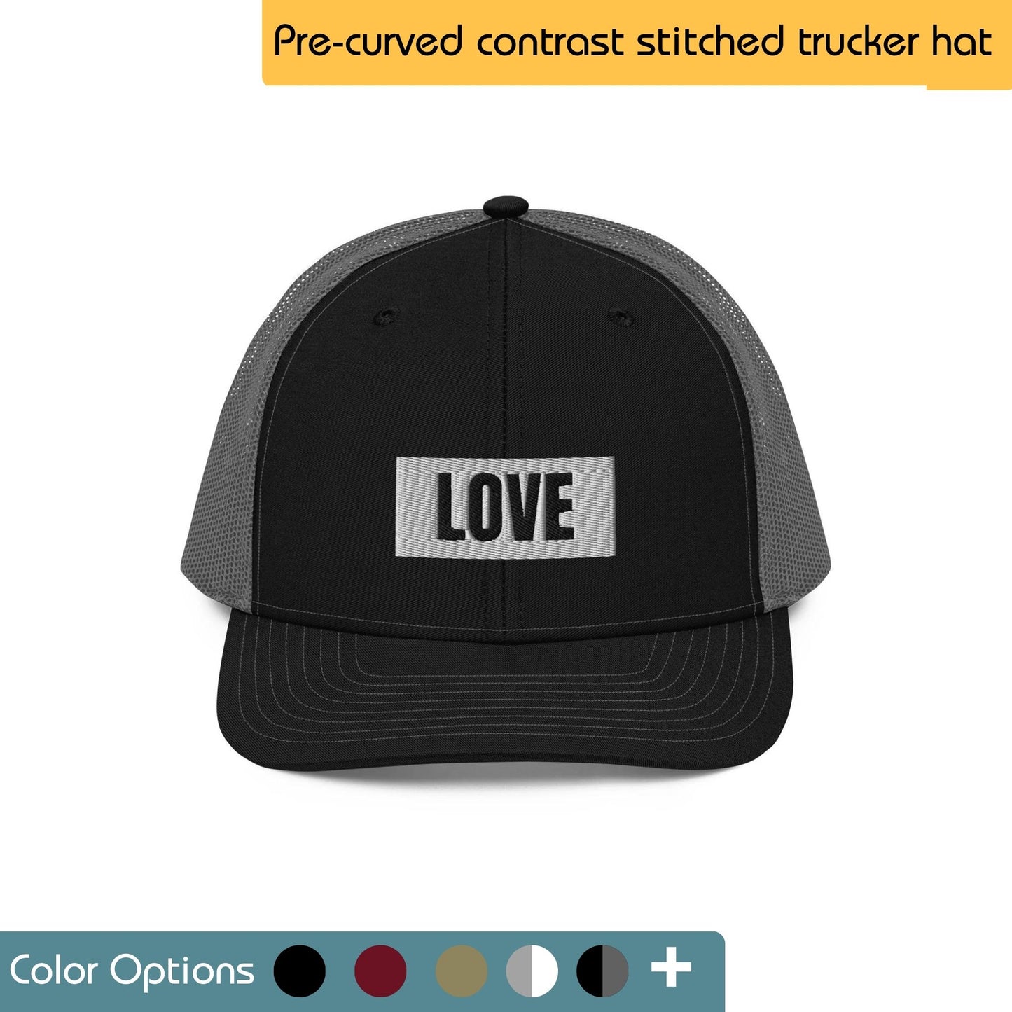 LOVE Embroidered Pre-Curved Contrast Stitched Trucker Cap | Be You Out Loud