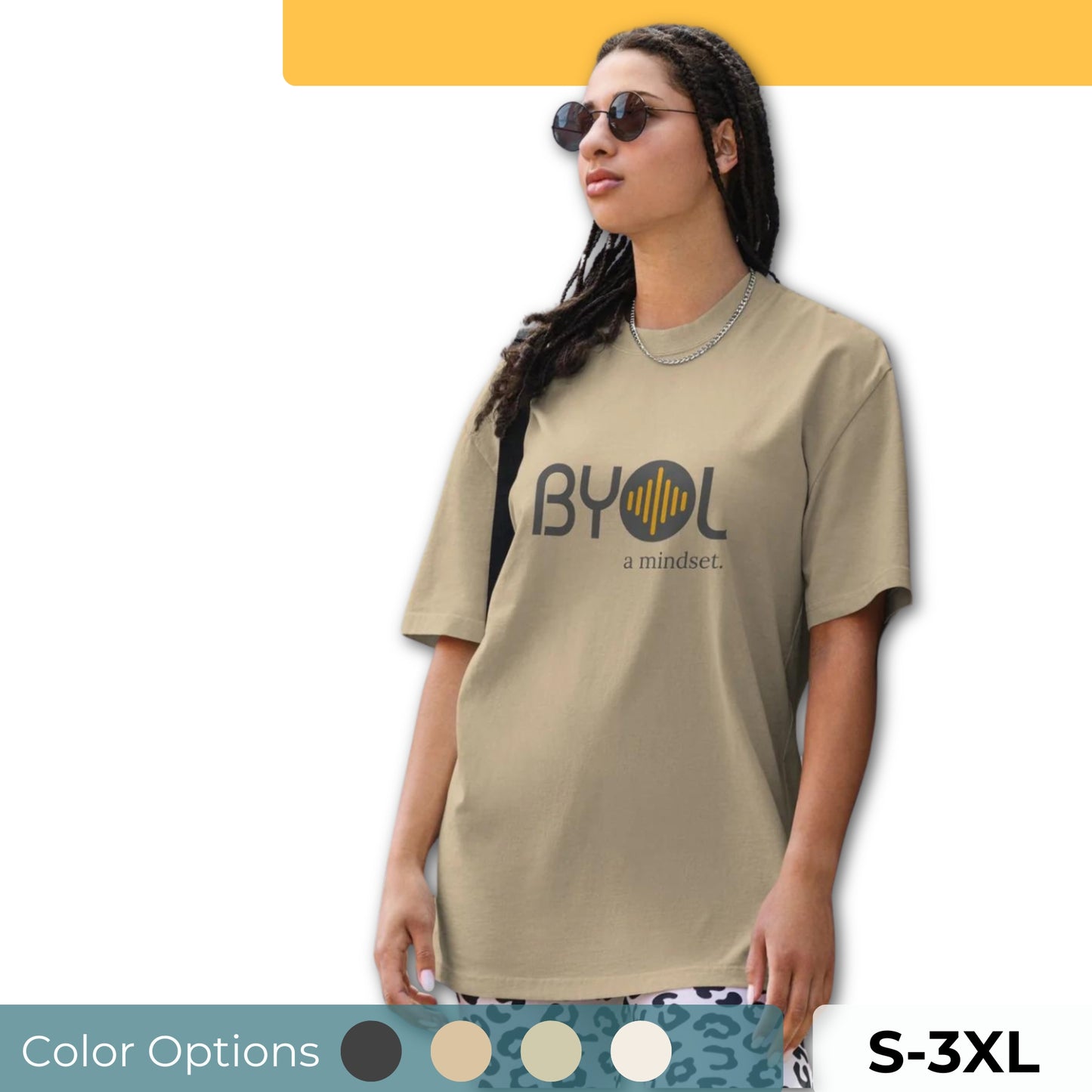 Embrace your unique style with the Women’s Expressive Oversized Faded Tshirt. Featuring the striking BYOL logo and "a mindset" tagline, this tee encourages bold self-expression. Perfect for making a statement or gifting to inspire someone special.