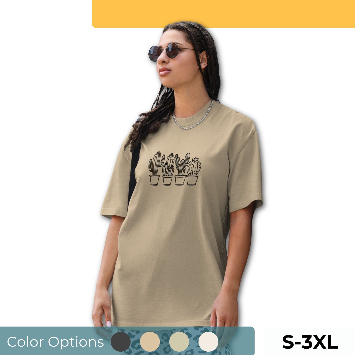 Women's Oversized Faded Tee's - Charming Cactus Design