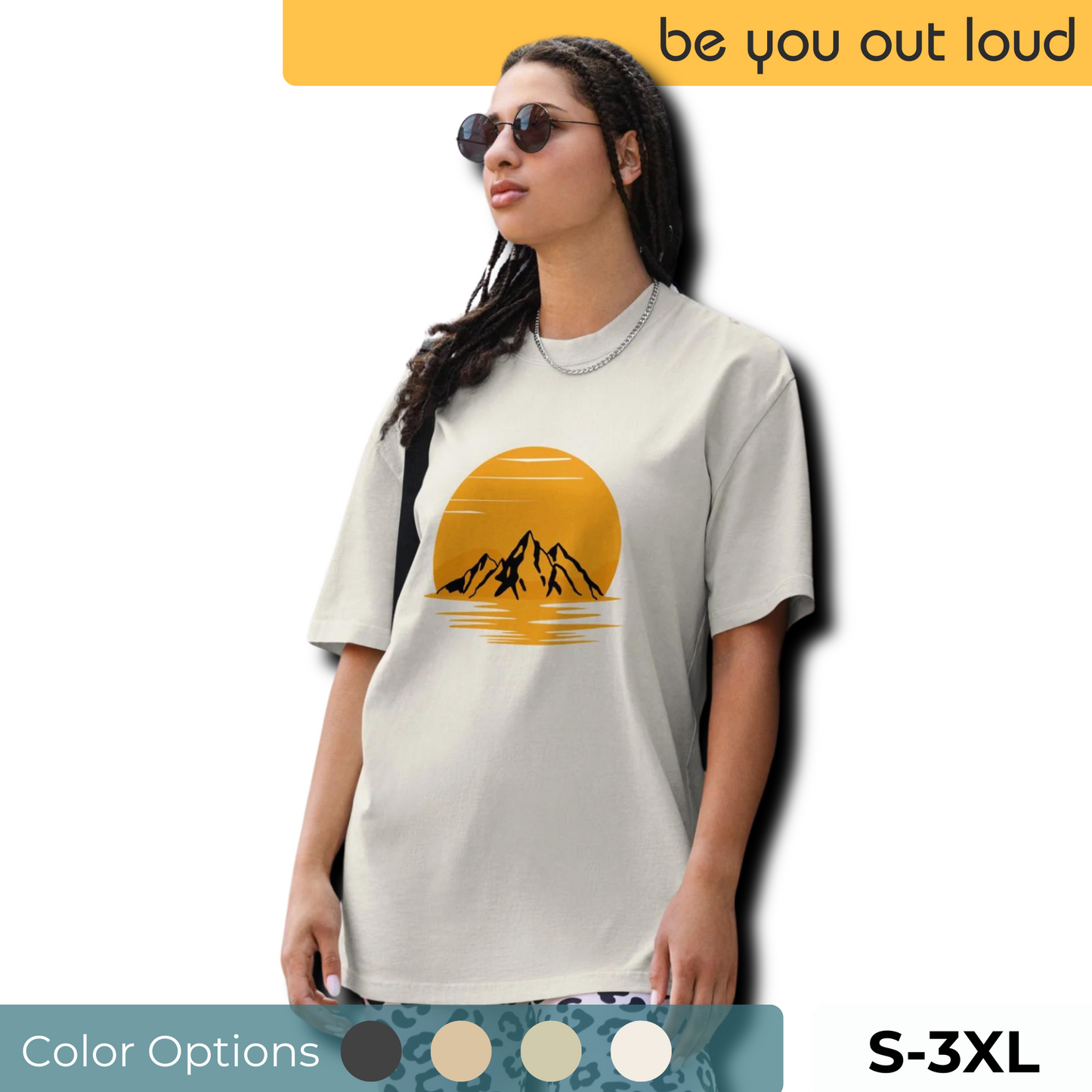 Women’s Sunset Mountains Lifestyle Oversized Graphic Tee